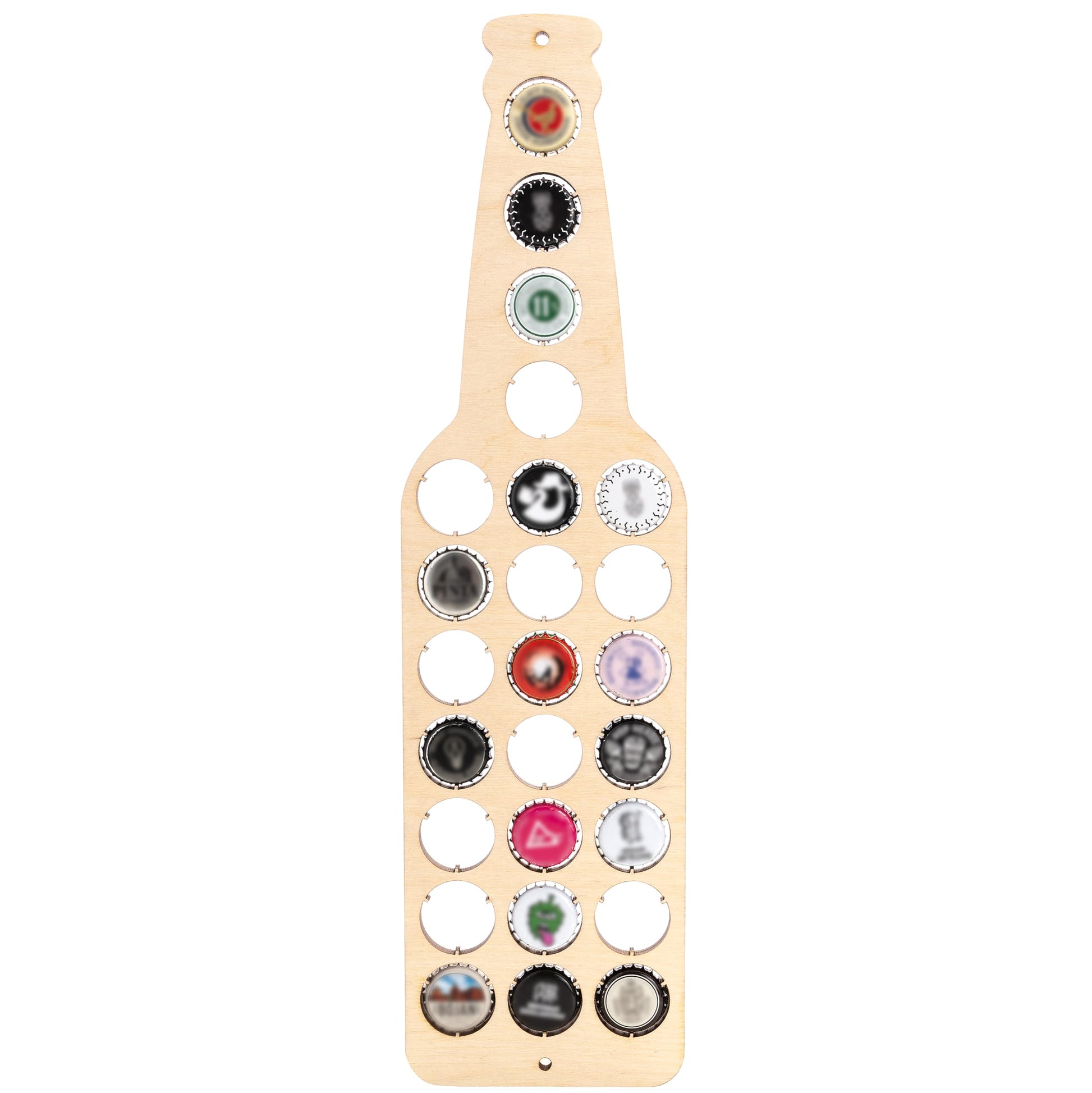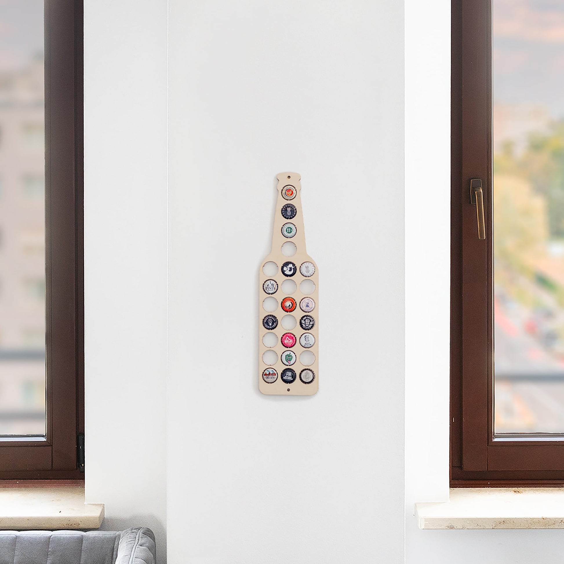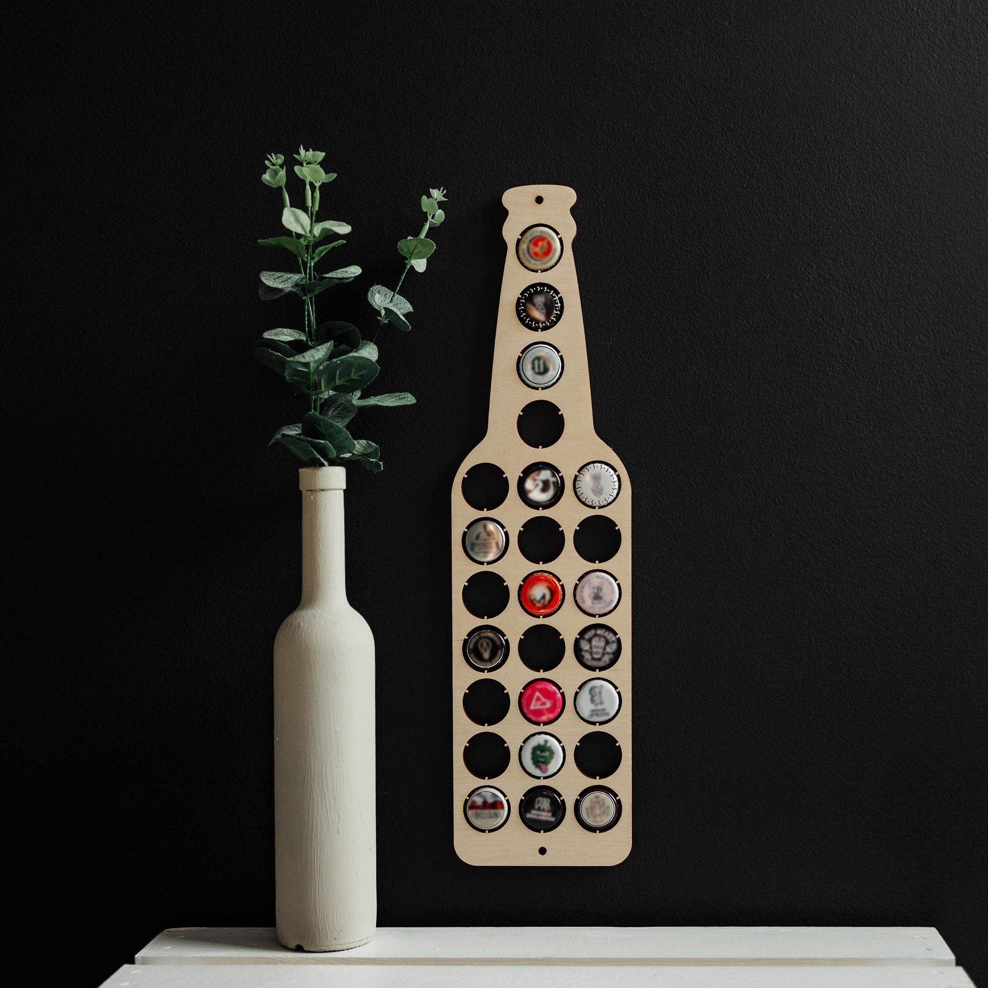 La botella expositor de chapas convierte tus chapas en recuerdos, con un diseño moderno y bien pensado. Fabricada en madera contrachapada de alta calidad, ligera y resistente, esta pieza expone hasta 25 chapas como auténticas mini‑obras de arte en la pared. Perfecta para coleccionistas, amantes de la cerveza artesanal y quienes saben que cada botella cuenta una historia.