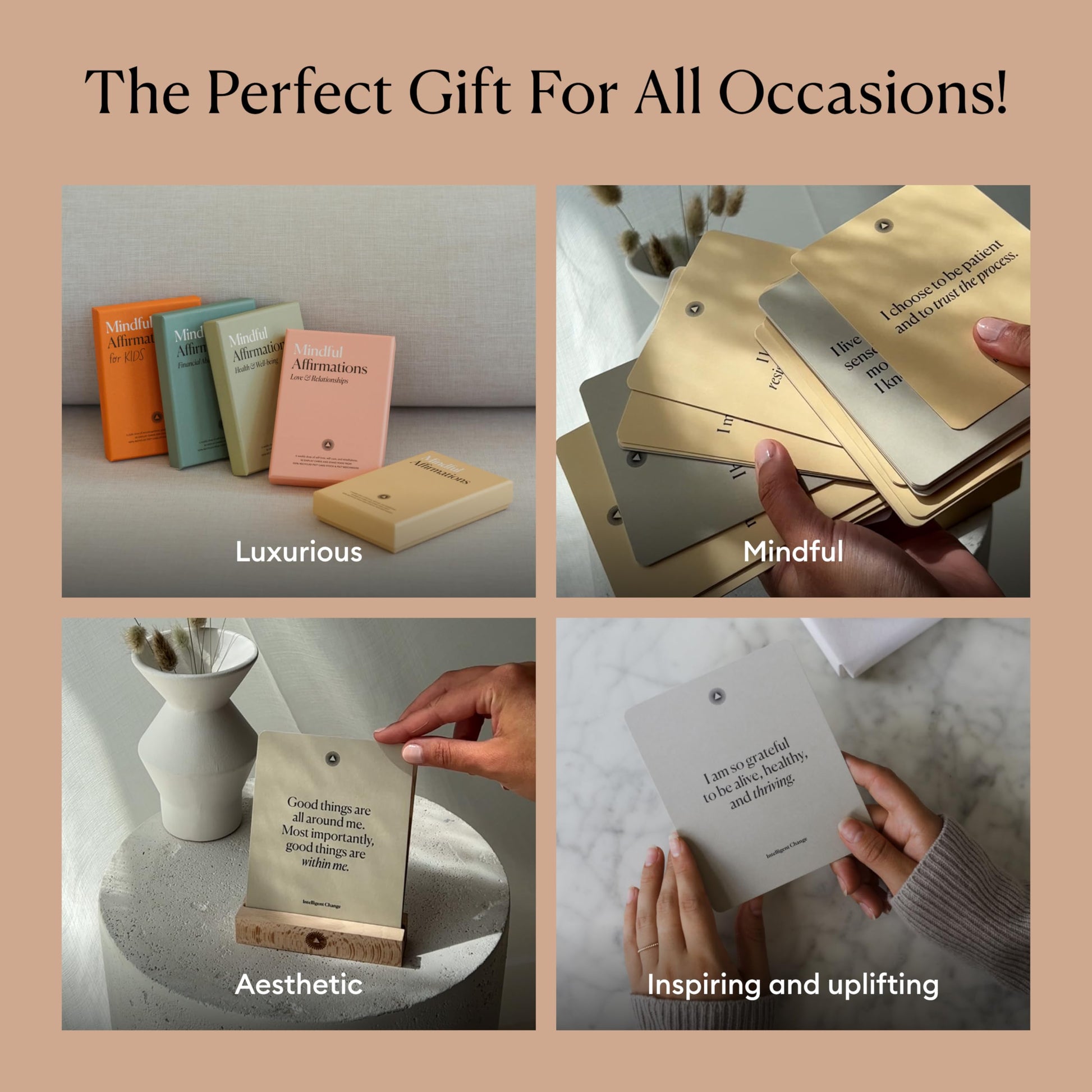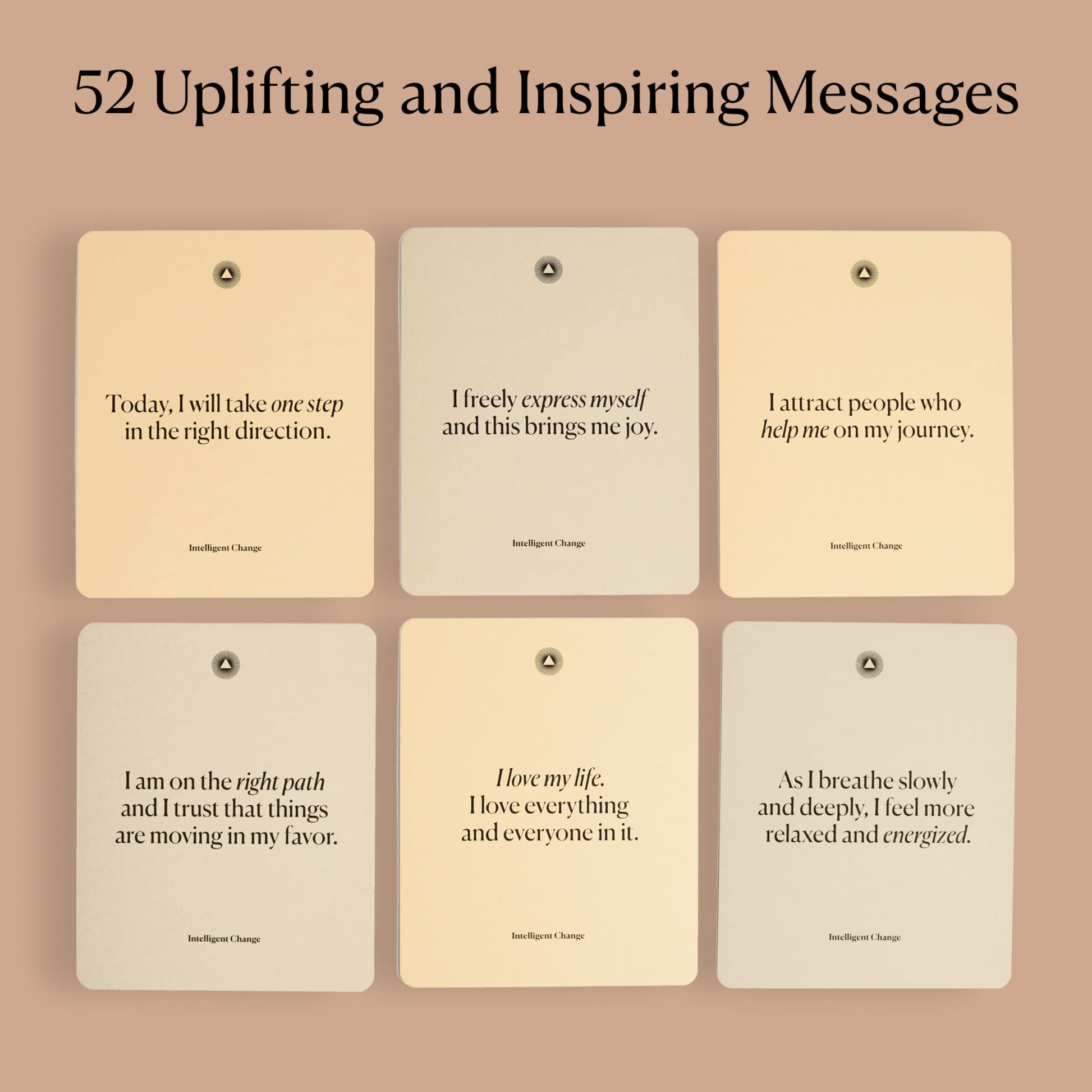 • 52 afirmaciones para todo el año: selecciona una carta semanal y deja que te acompañe como recordatorio de calma y propósito.