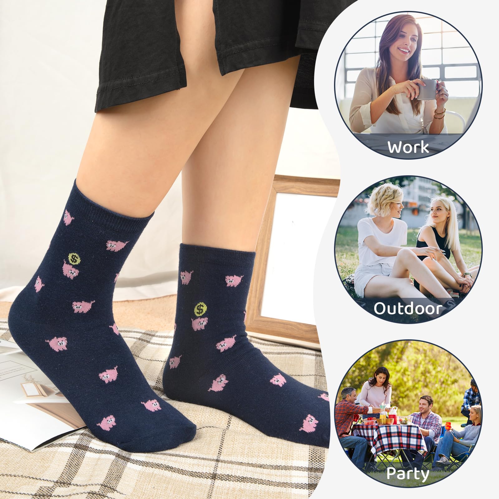 - Diseño Lindo: Nuestros calcetines de algodón con patrón de animales para mujeres tienen diseños lindos y divertidos, con una variedad de diferentes colores, lo que los hace únicos y llamativos, y fáciles de combinar con tu outfit diario.
