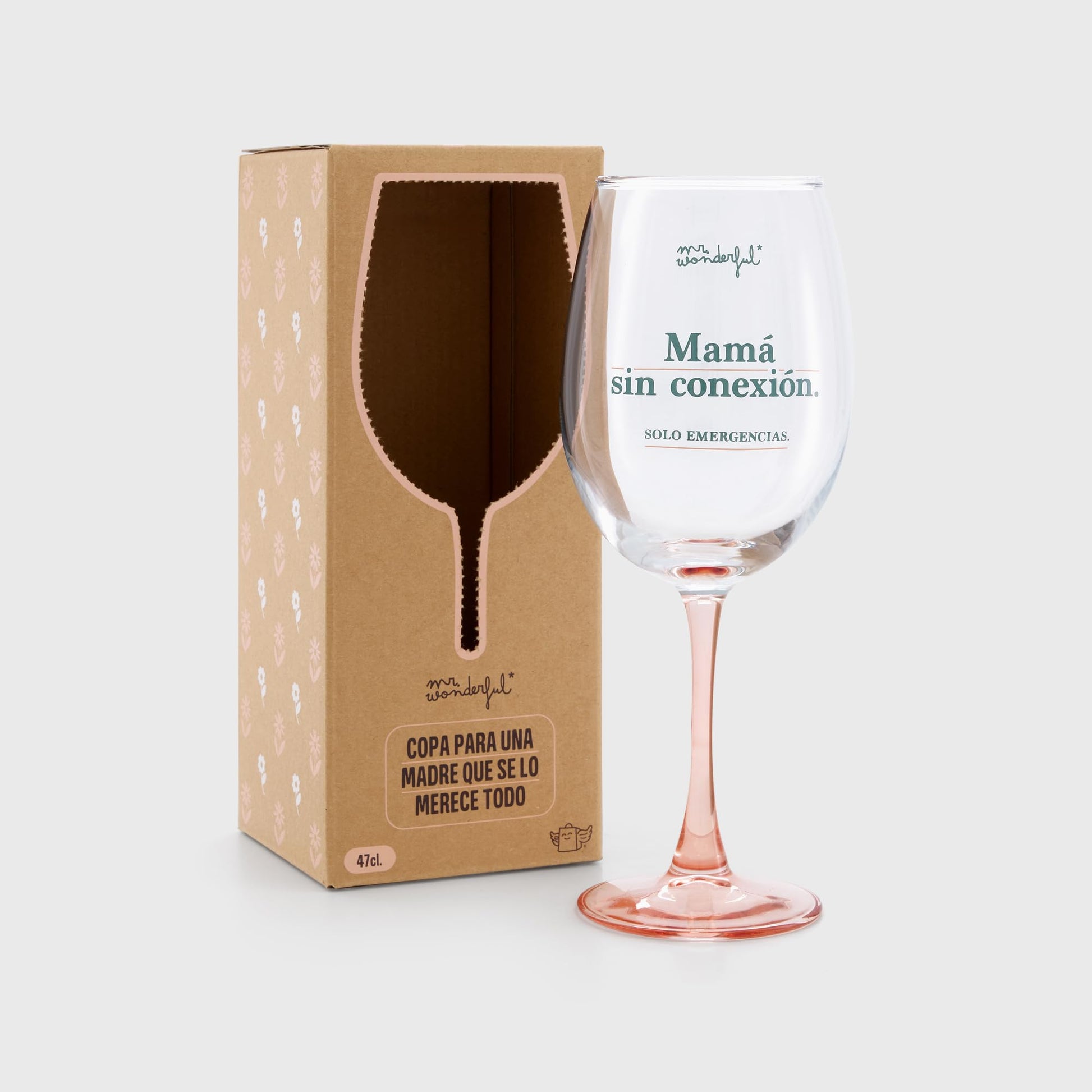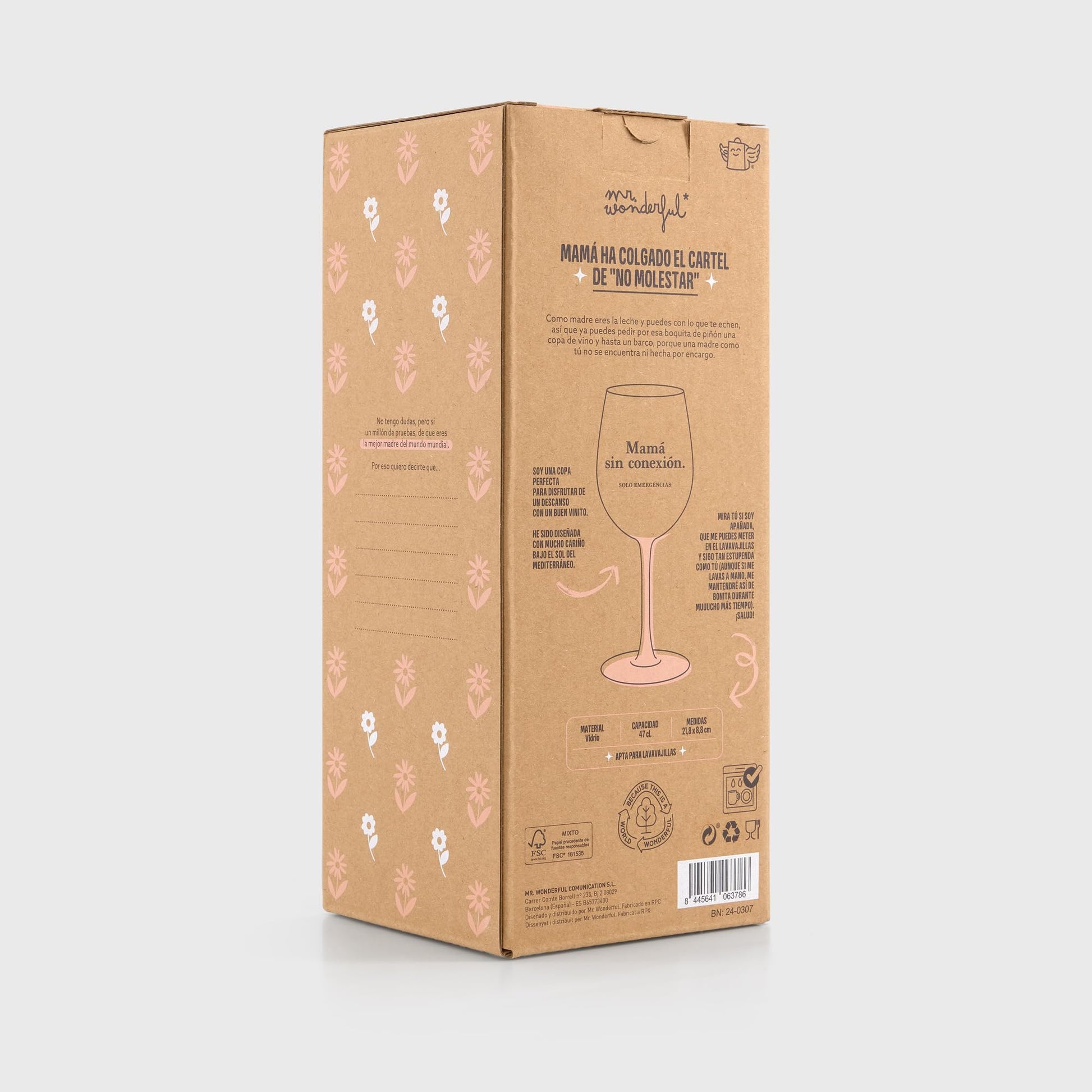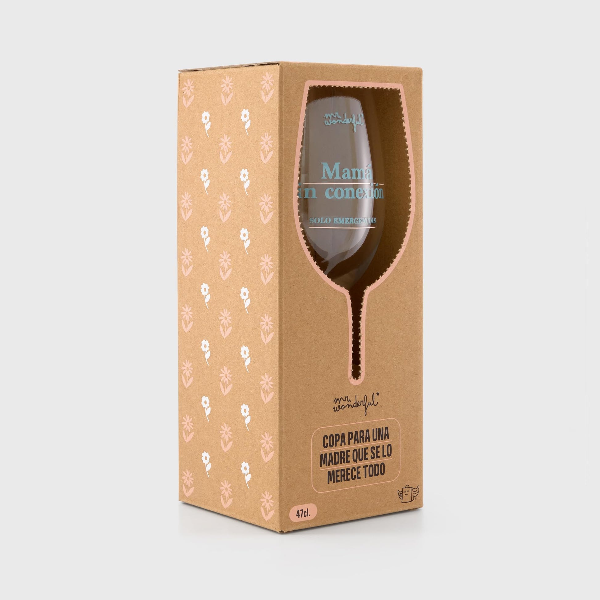La copa “Mamá sin conexión” de Mr. Wonderful es un guiño divertido para la madre que merece desconectar… y brindar a su ritmo. Fabricada en vidrio y con un mensaje tan ingenioso como ella, esta copa de 47 cl es ideal para disfrutar su vino favorito sin prisa y con mucho estilo. Su diseño delicado hace de cada sorbo un momento para ella sola. Se recomienda lavar a mano para mantener el mensaje siempre perfecto.