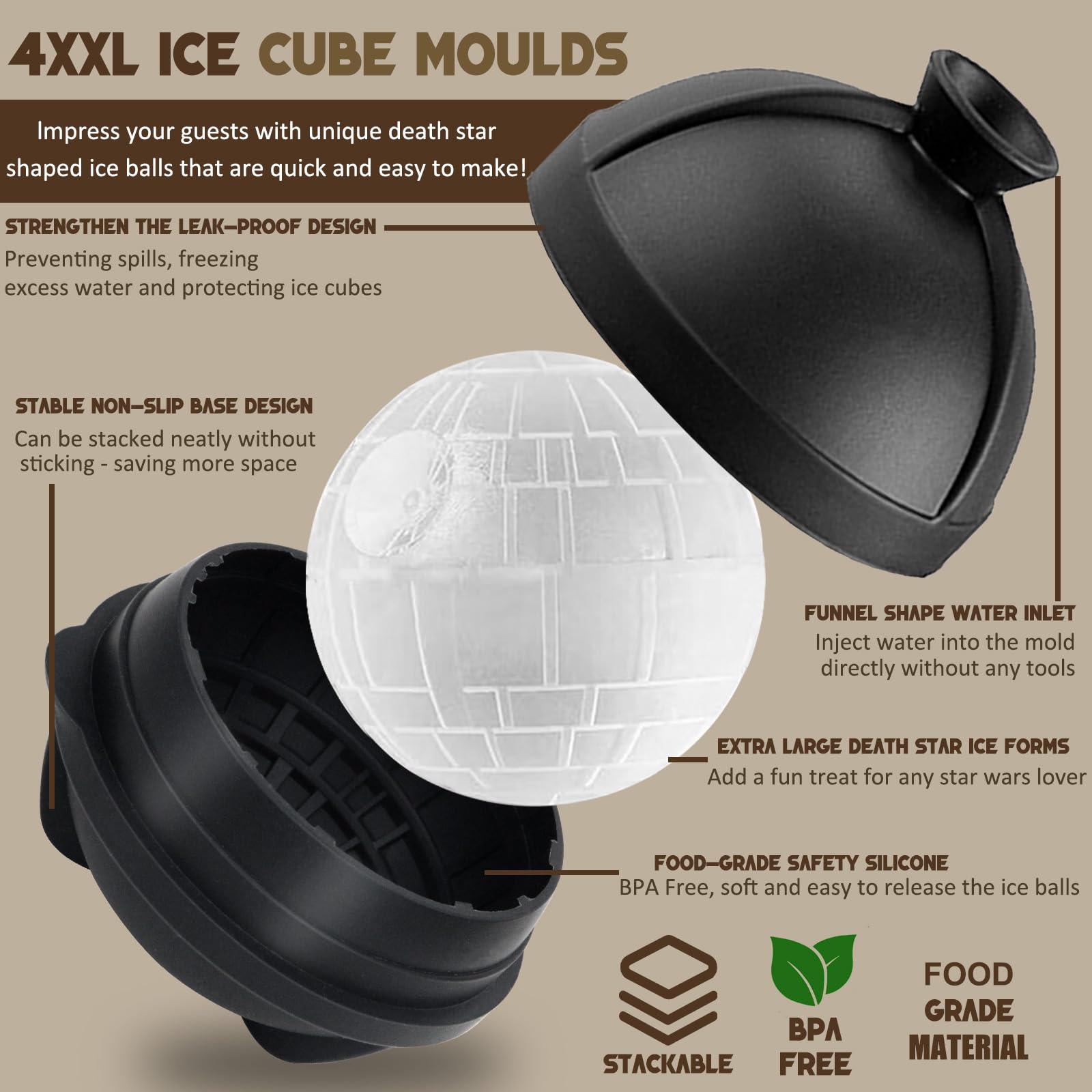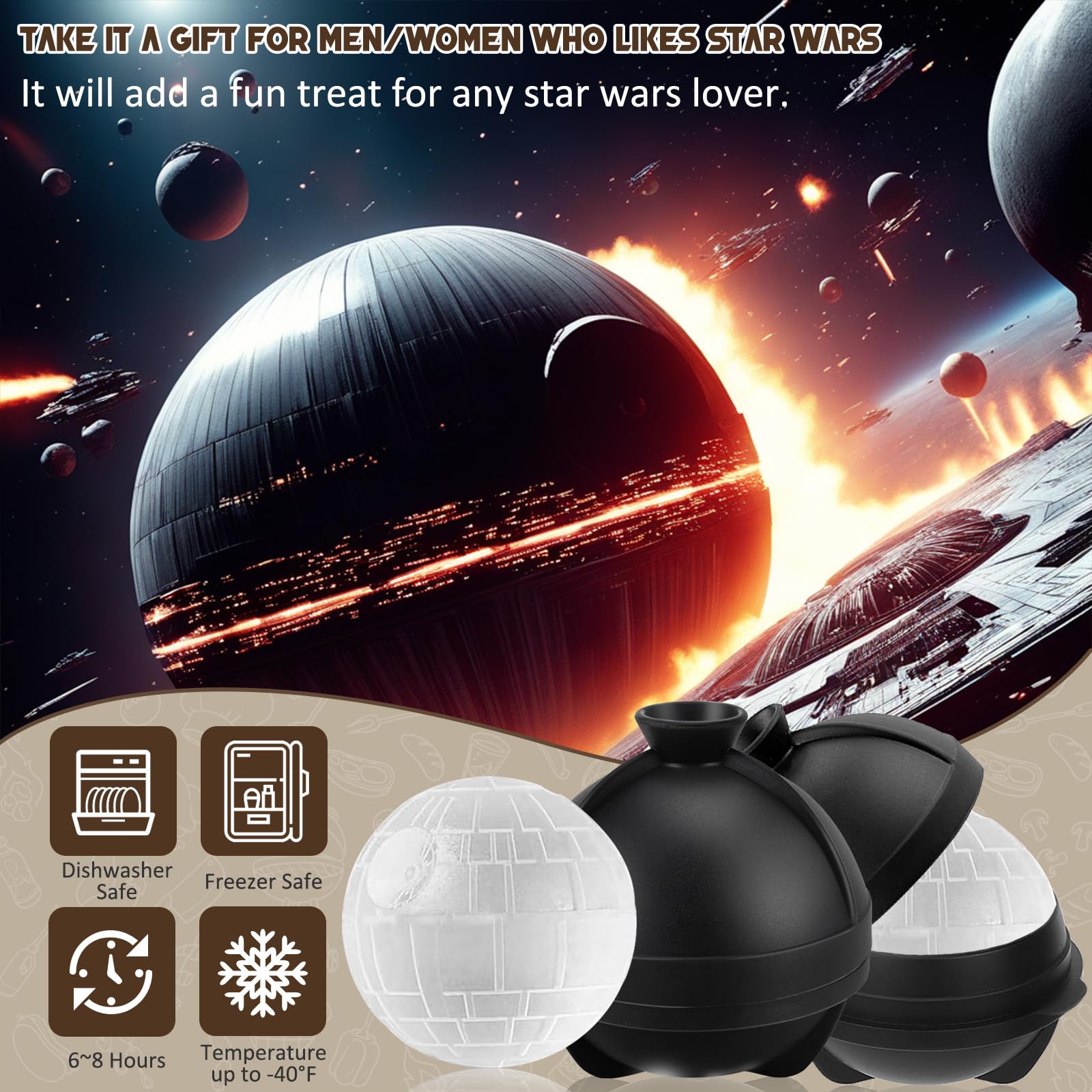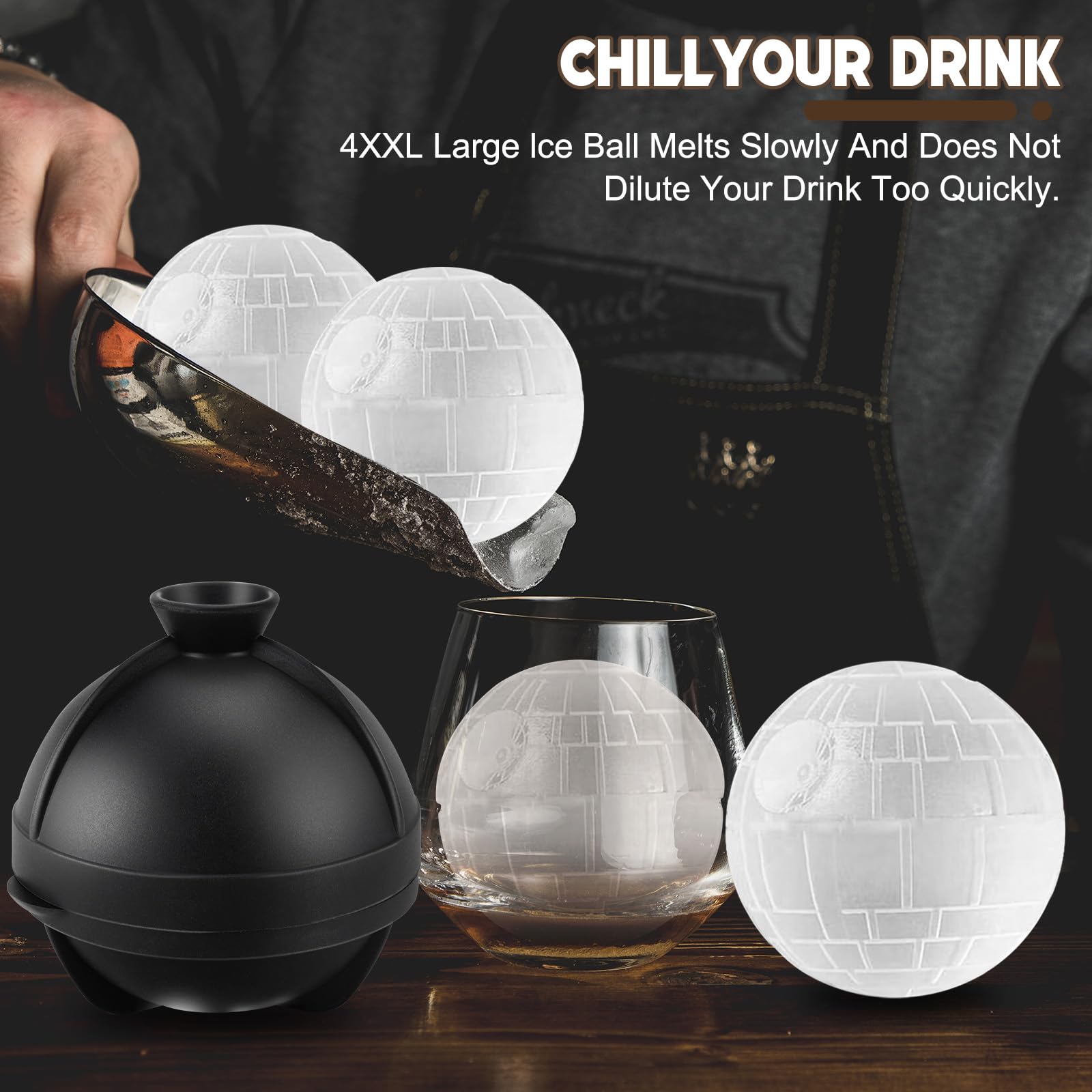 - AMPLIA APLICACIÓN: Esta cubitera hielo redondos combina arte y practicidad, con una gran esfera de cubitos de hielo en forma de Estrella de la Muerte para todo tipo de bebidas: cócteles, whisky, té, café, etc. para que usted y sus amigos se sientan como en el ambiente de ciencia ficción de la película mientras levantan un vaso de su bebida favorita. ¡Los cubitos de hielo redondo grande harán de cada sorbo un viaje a las estrellas y te refrescarán durante todo el verano!