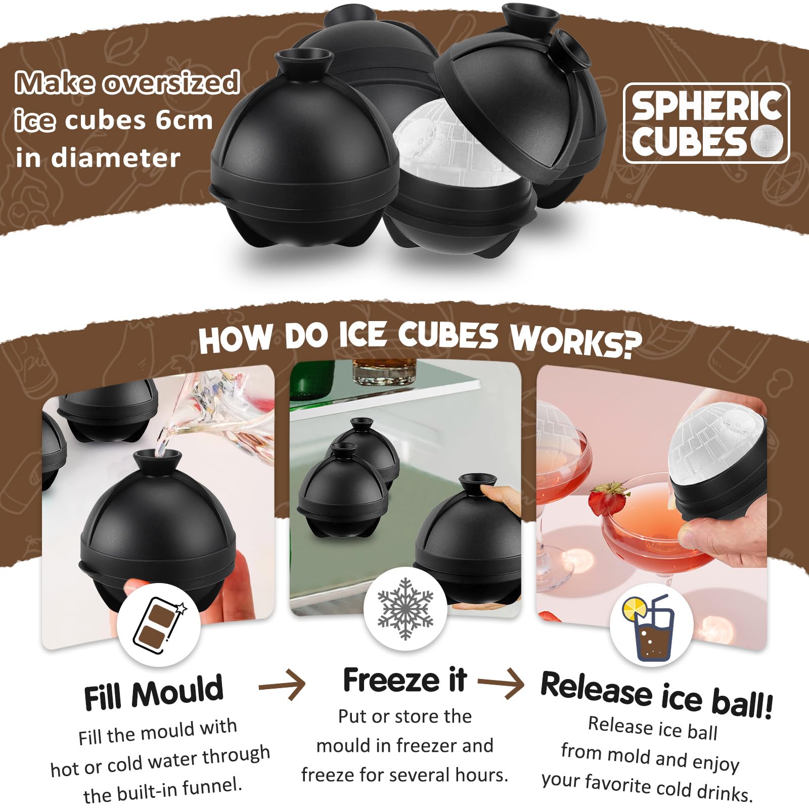 - Hielos Redondo: El molde de hielo redondo de 4 piezas crea grandes cubitos esféricos con forma de planetas, recreando con precisión la estética de ciencia ficción de la experiencia cinematográfica en una bebida fría. Los cubitos de hielos esféricos tienen una superficie menor que los rectangulares, se derriten más lentamente y enfrían sus bebidas rápidamente. ¡Los hielos esféricos de gran tamaño mantienen sus bebidas siempre frías!