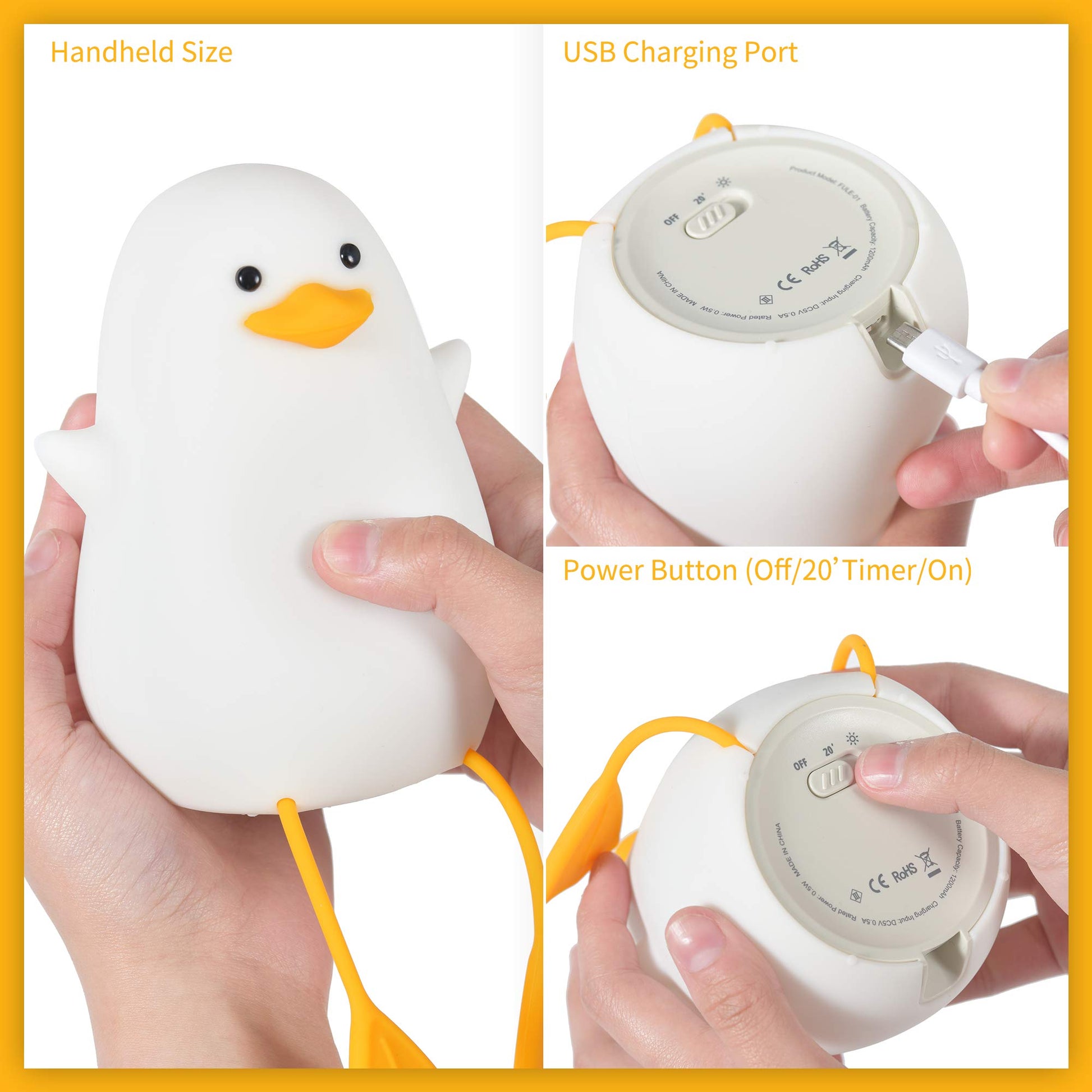 La lamparita Patito de Gavigavi combina suavidad, seguridad y un diseño adorable que encanta a grandes y pequeños. Fabricada en silicona lavable y libre de BPA, ofrece un tacto agradable y resistencia para acompañar noches tranquilas o momentos de juego. Su luz regulable por toque o pellizco crea el ambiente perfecto, y su batería recargable de 1200 mAh ilumina hasta 15 horas sin cables.