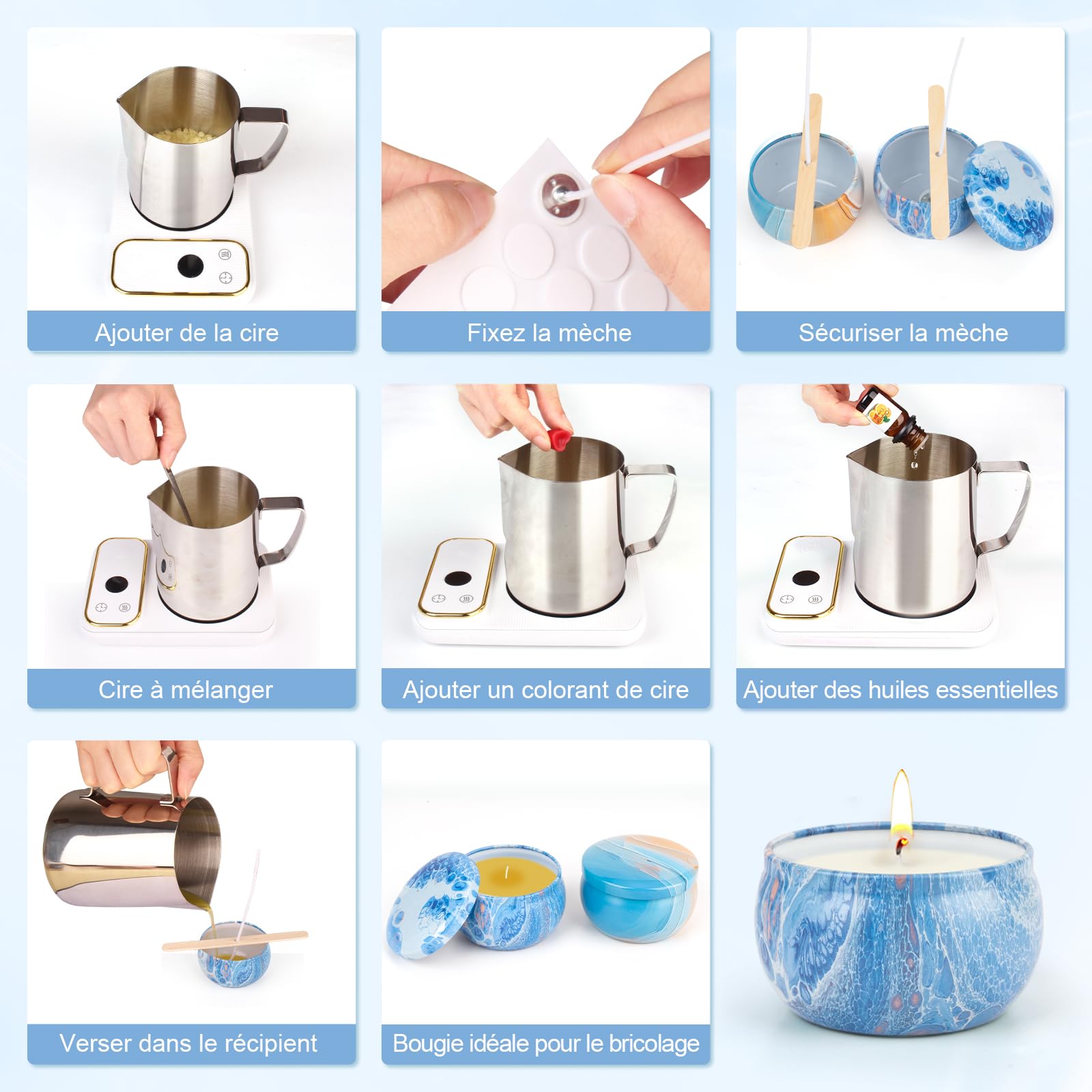 - Kit de fabricación de velas para todas las etapas:Las instrucciones de fabricación de velas recién actualizadas le facilitarán la comprensión de cómo hacer velas. Si usted es un principiante o un entusiasta de la vela de DIY, este kit de vela DIY le permite dejar volar su creatividad, si se trata de una vela perfumada de naranja dulce, una vela perfumada de hierba de limón fresco, o incluso una vela perfumada de lavanda tranquila, una variedad de aromas y colores para que usted pueda mezclar y combinar