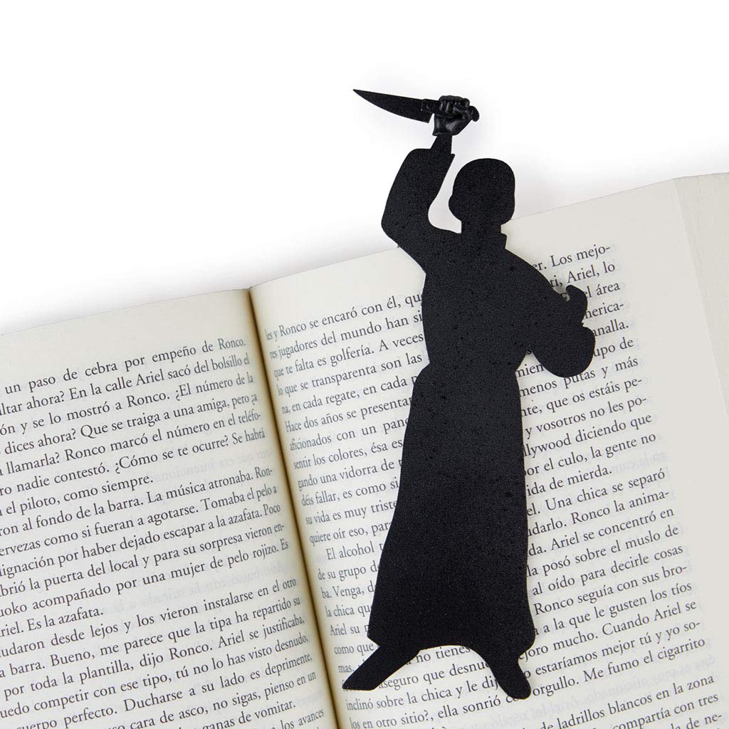 Este marcapáginas inspirado en el célebre cine de terror convierte cada pausa de lectura en un pequeño guiño cinematográfico. Fabricado en nylon resistente y con un diseño que no pasa desapercibido, es práctico, ligero y perfecto para mantener siempre localizado el último capítulo. Ideal para lectores que disfrutan tanto de un buen libro como de un buen susto clásico.