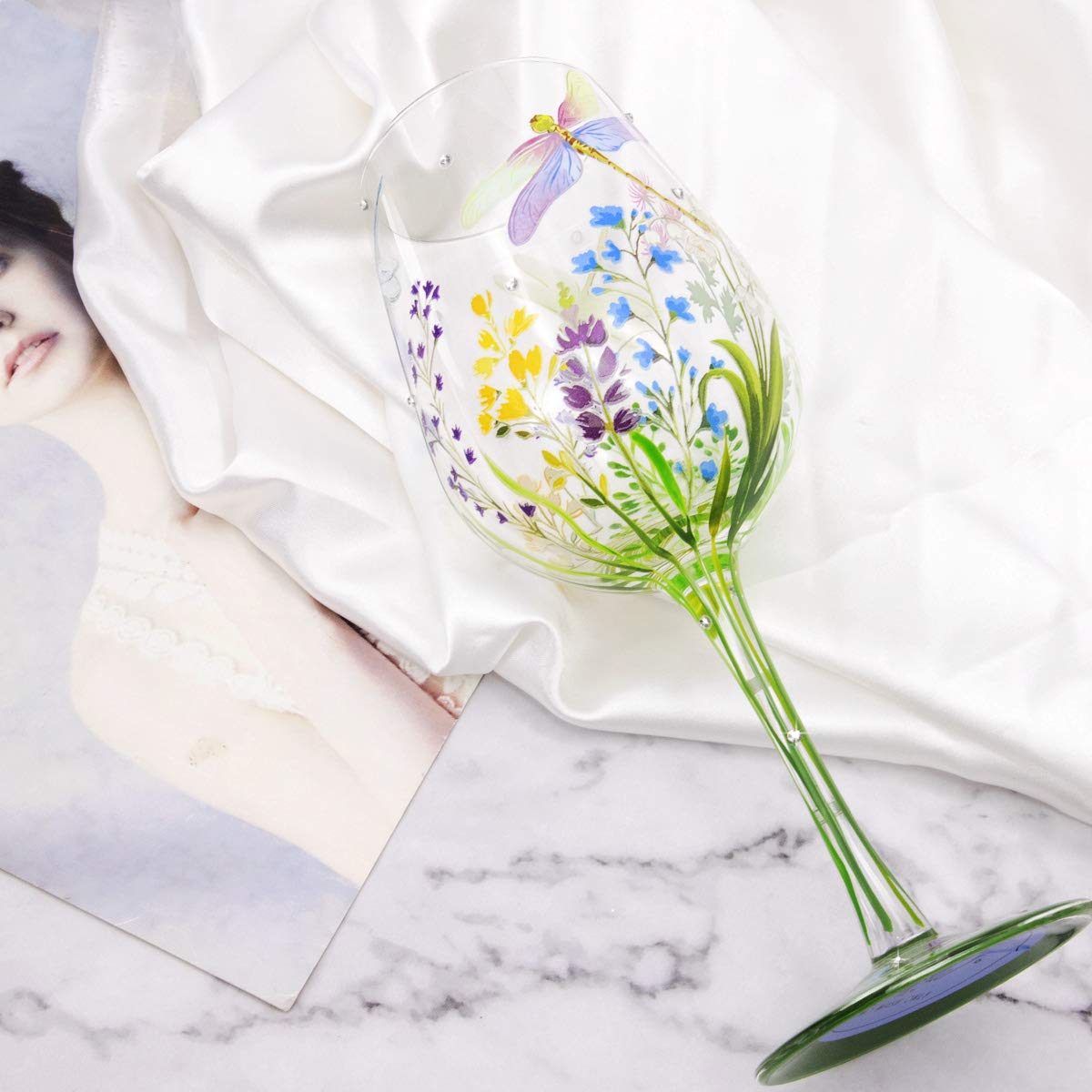 - TEN CUIDADO: Para enriquecer la belleza del diseño, se adoptaron múltiples procesos como flores pintadas a mano combinadas con flores tostadas a alta temperatura y engastado de oro de diamante de punto artificial, solo lavado a mano. El tamaño del vidrio es de 22.3x8.3x8.3cm. Capacidad: 15oz.