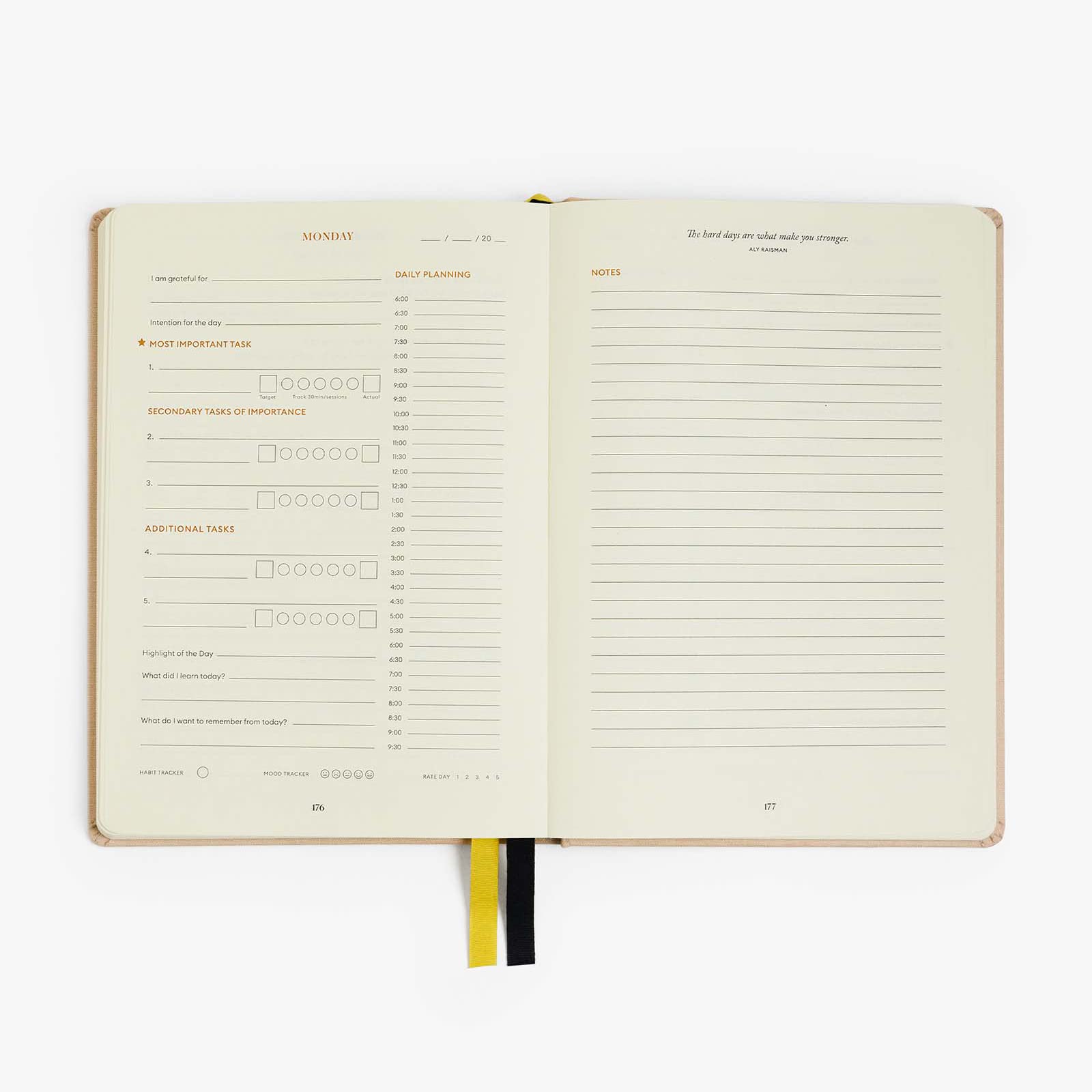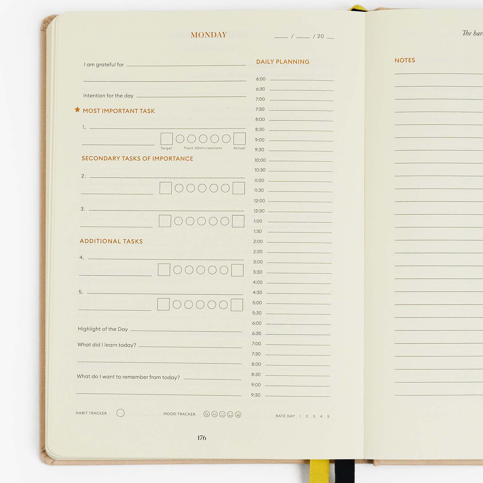 • Productividad consciente: estructura tus días de 6 AM a 9 PM con prioridades claras y seguimiento de tiempo.