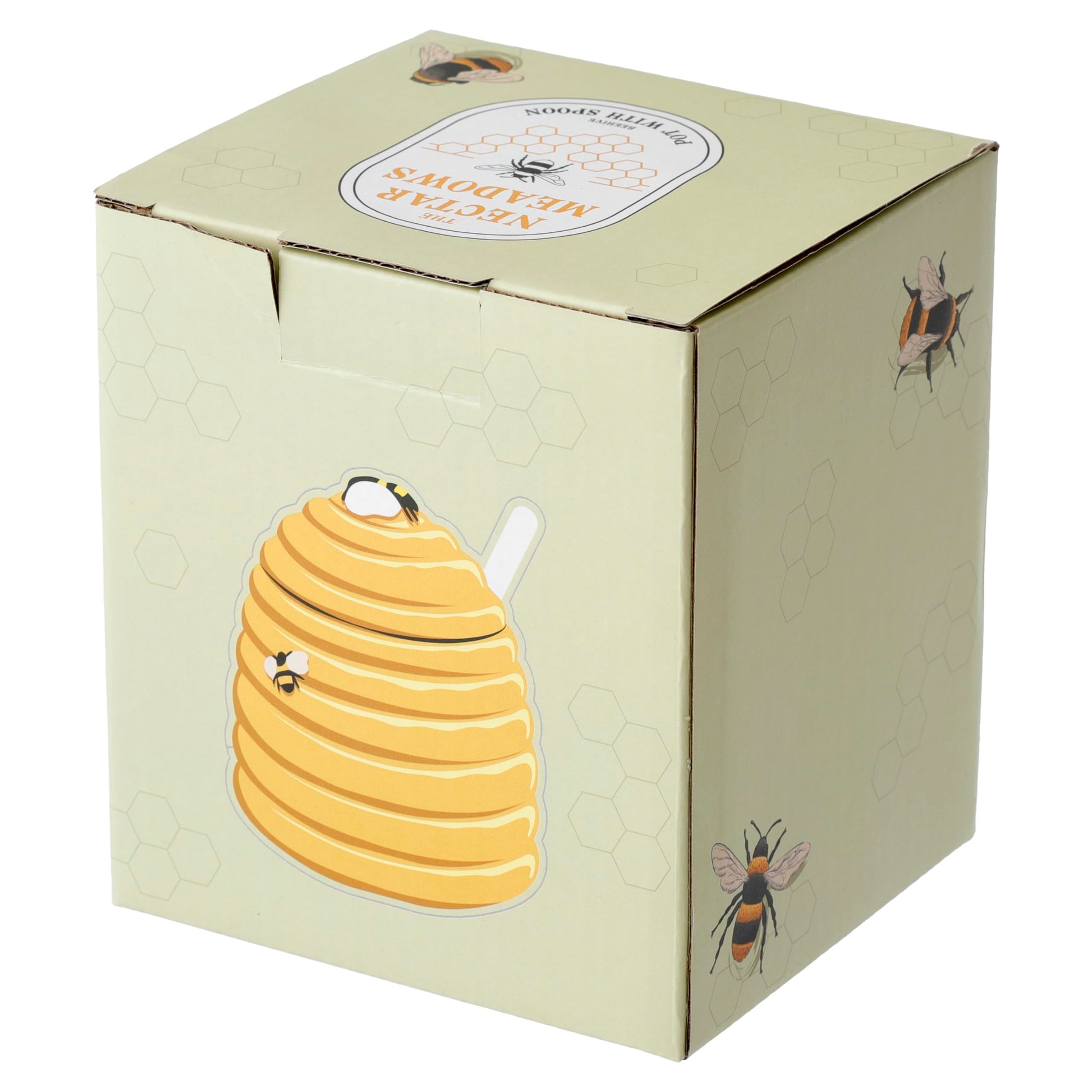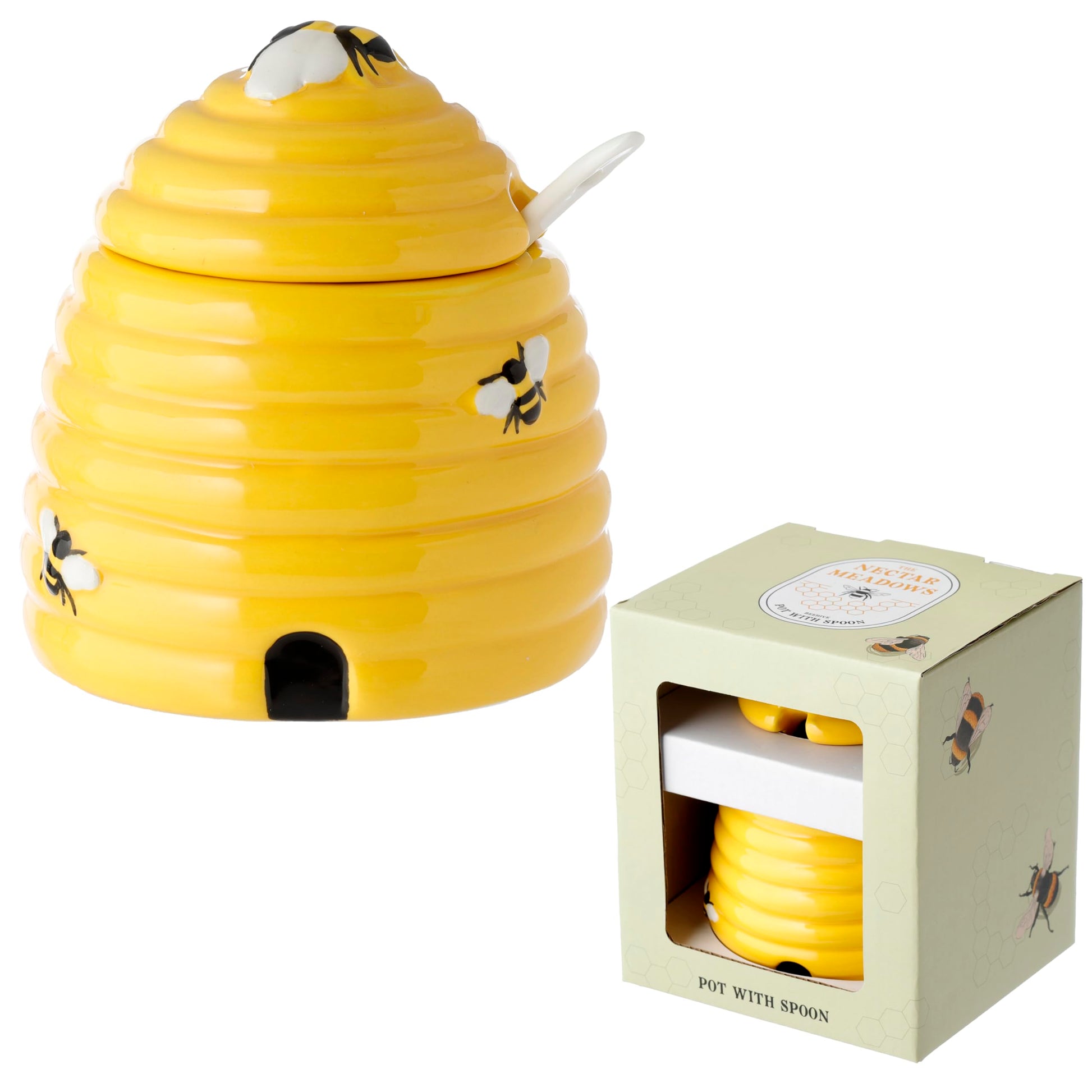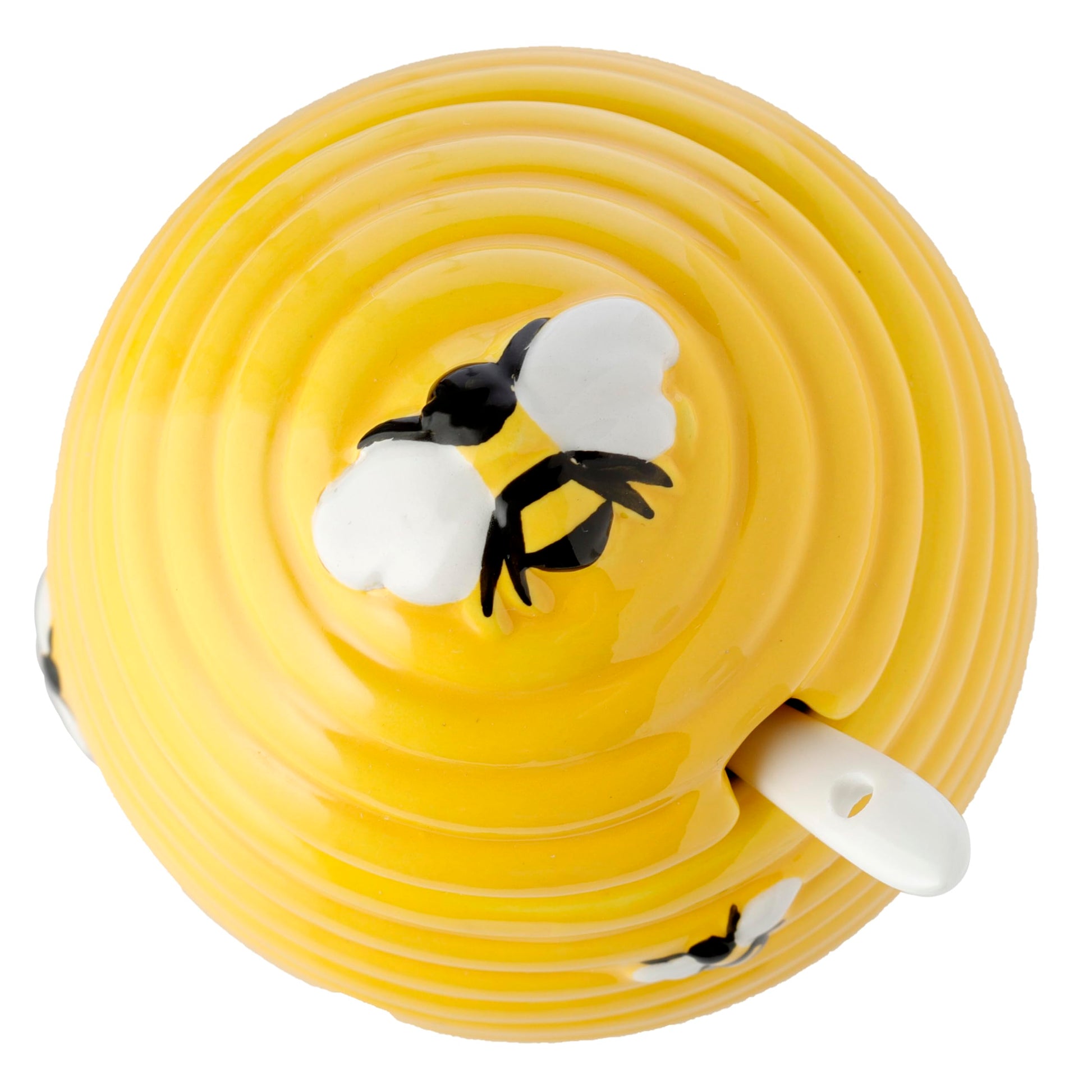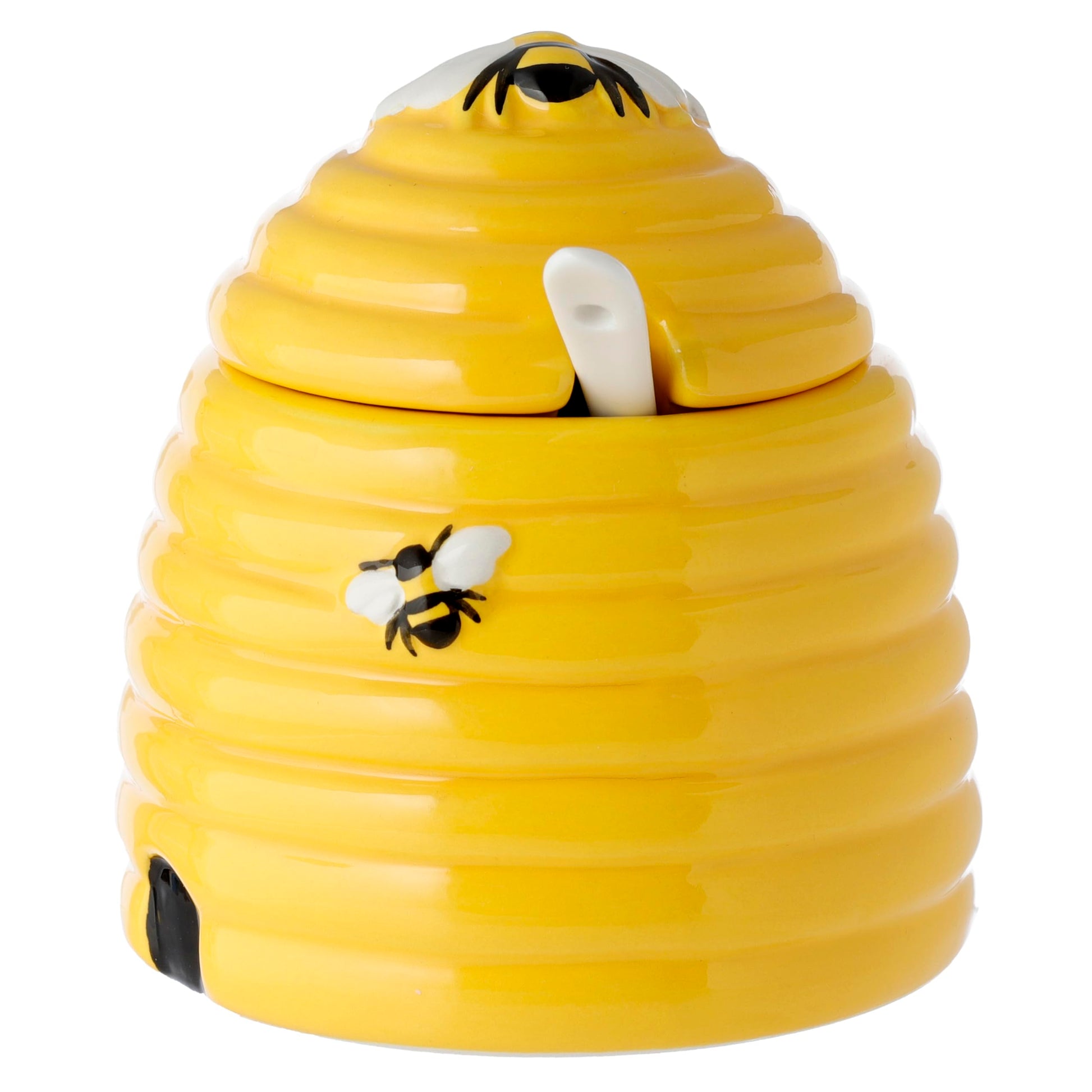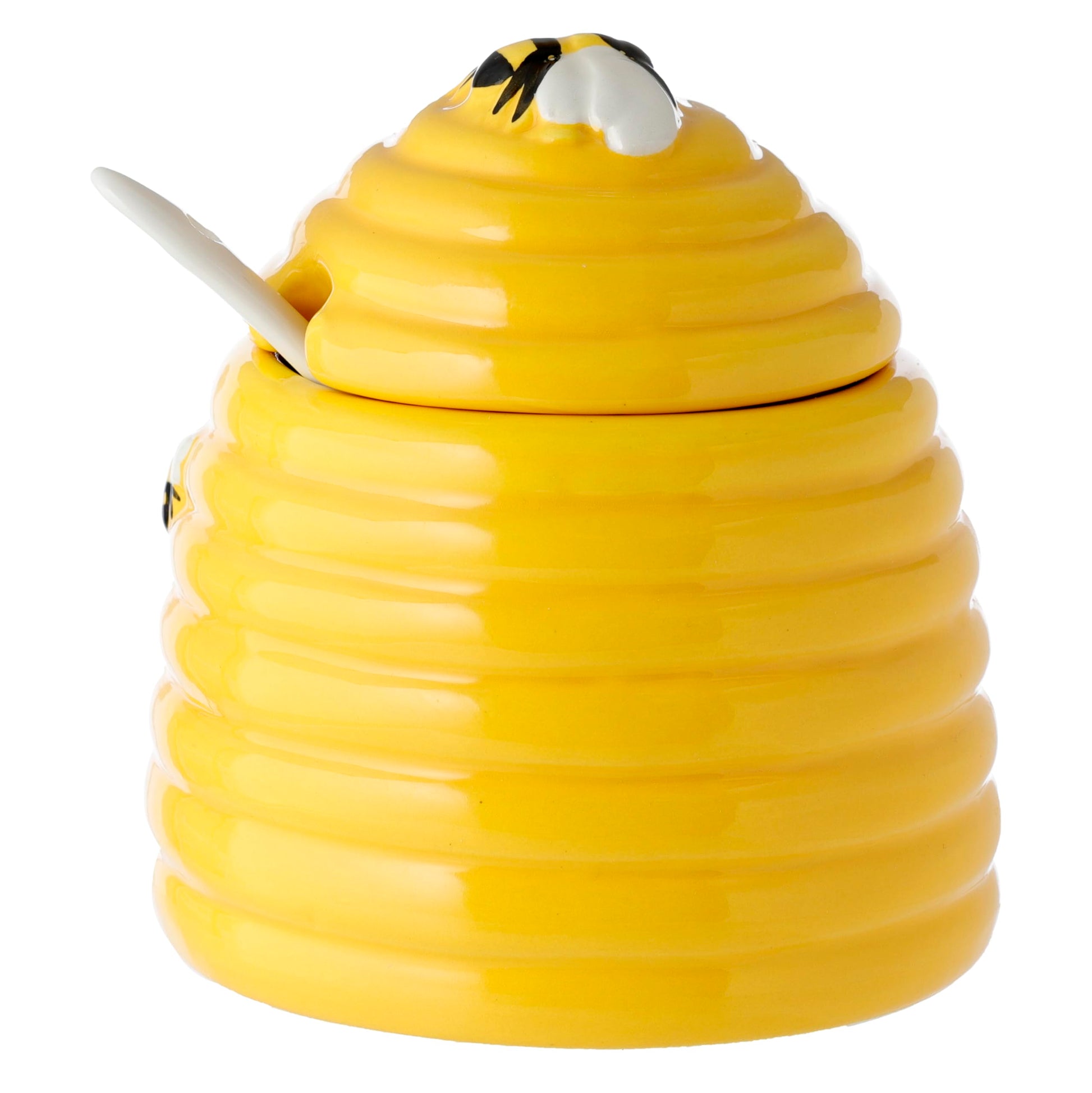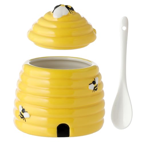 - Puckator Olla de cerámica con forma de colmena con tapa y cuchara, plato para servir