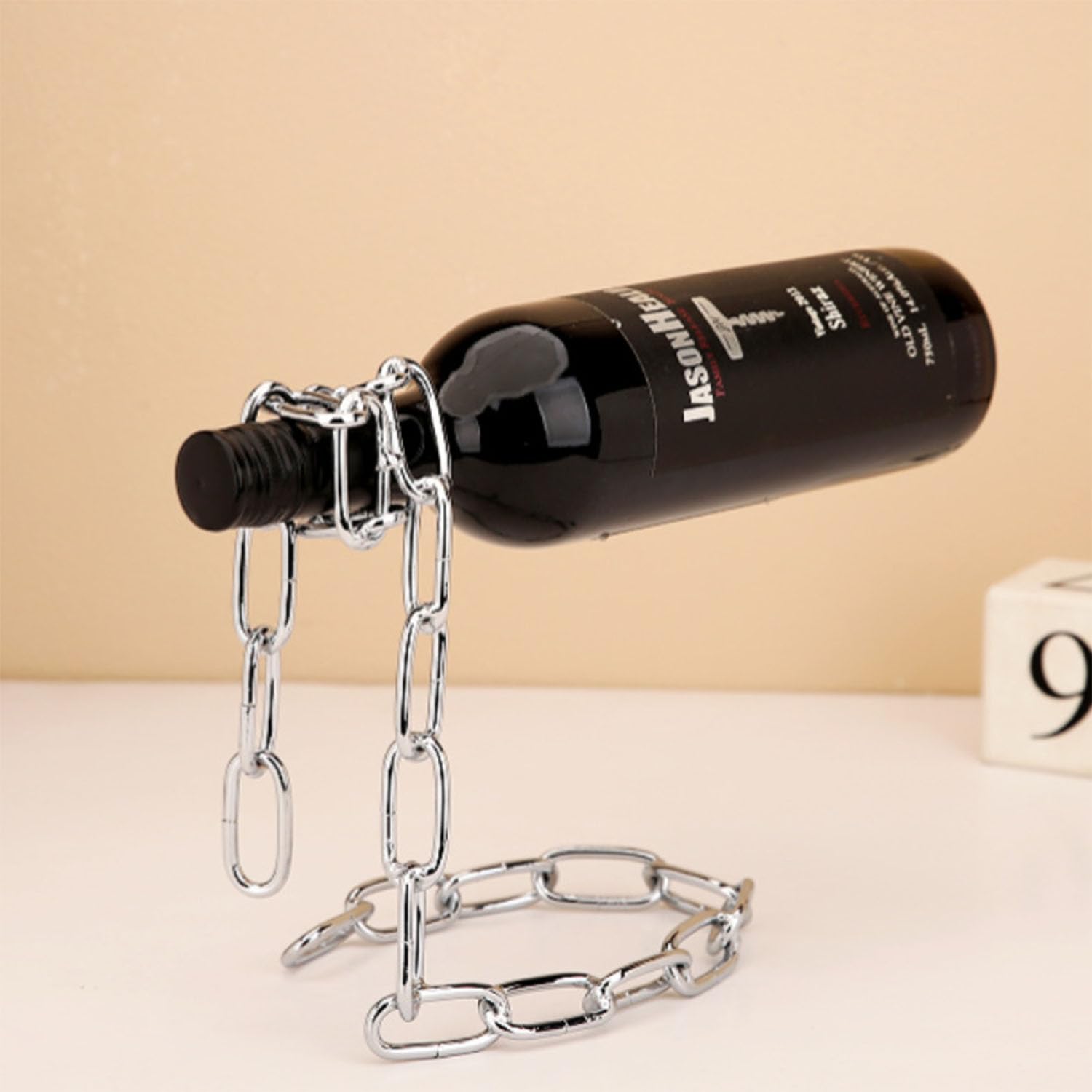 Nuestros botelleros flotantes están hechos de materiales metálicos de alta calidad y están bellamente diseñados con un aspecto de cadena de metal vintage.