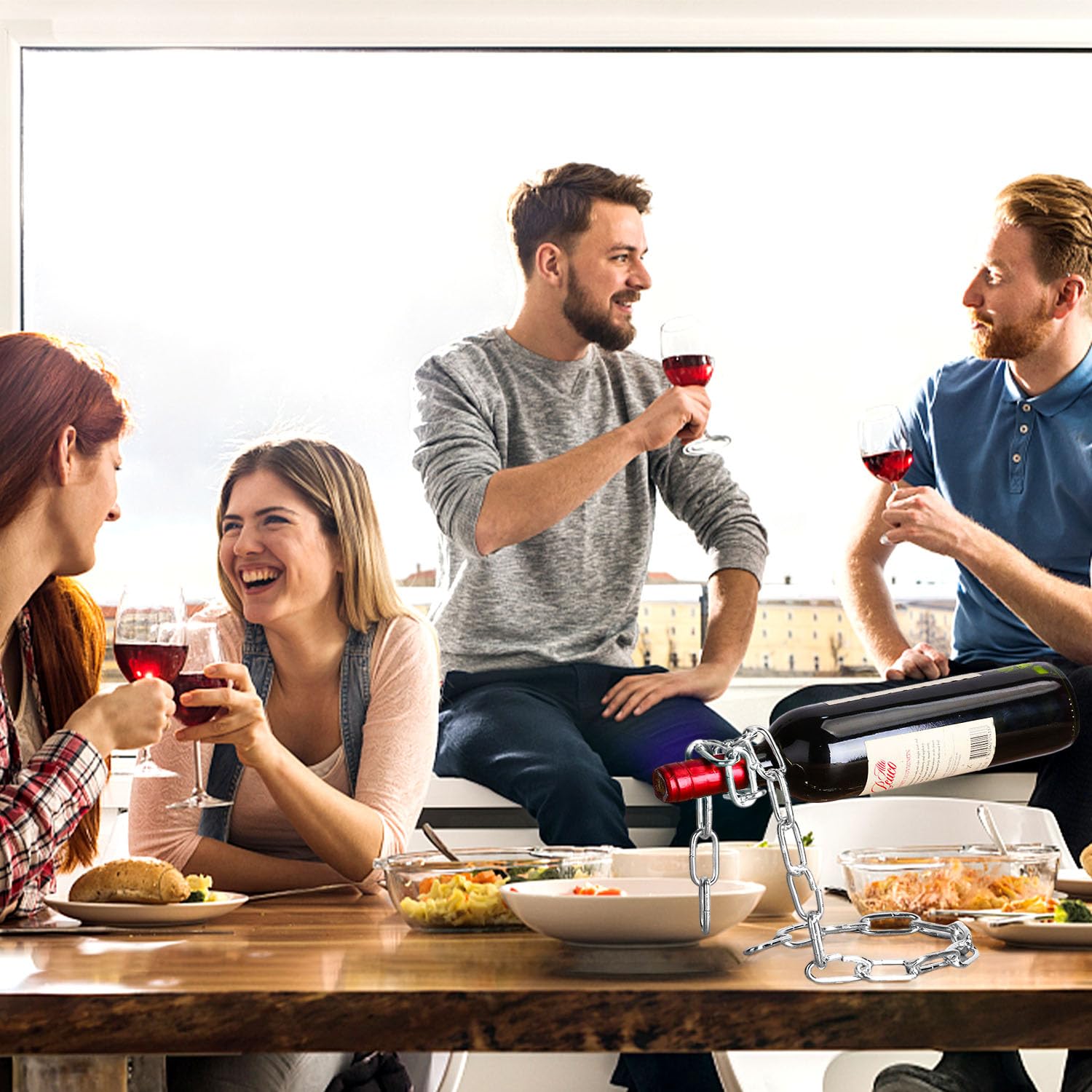 Soporte botella cadena – Tu vino desafiando la gravedad