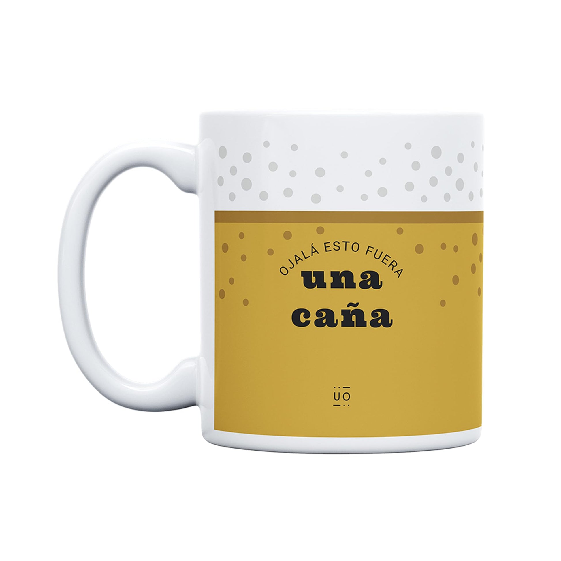 La taza Ojalá fuera una caña de UO es la mezcla perfecta entre humor y diseño. Su exterior imita el color dorado y las burbujas de una cerveza recién tirada, pero dentro guarda tu café de cada mañana. Ideal para quienes afrontan el día con sentido del humor (y ganas de terraceo), esta taza de cerámica es resistente, apta para microondas y lavavajillas, y viene lista para regalar.