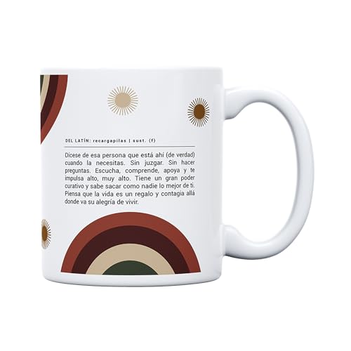 La taza Persona vitamina de UO es un rayo de sol en forma de regalo. Pensada para esa persona que ilumina tus días con su energía, su diseño combina colores cálidos y un mensaje lleno de cariño. Hecha en cerámica resistente y apta para microondas y lavavajillas, está diseñada para acompañar cafés, risas y momentos compartidos.