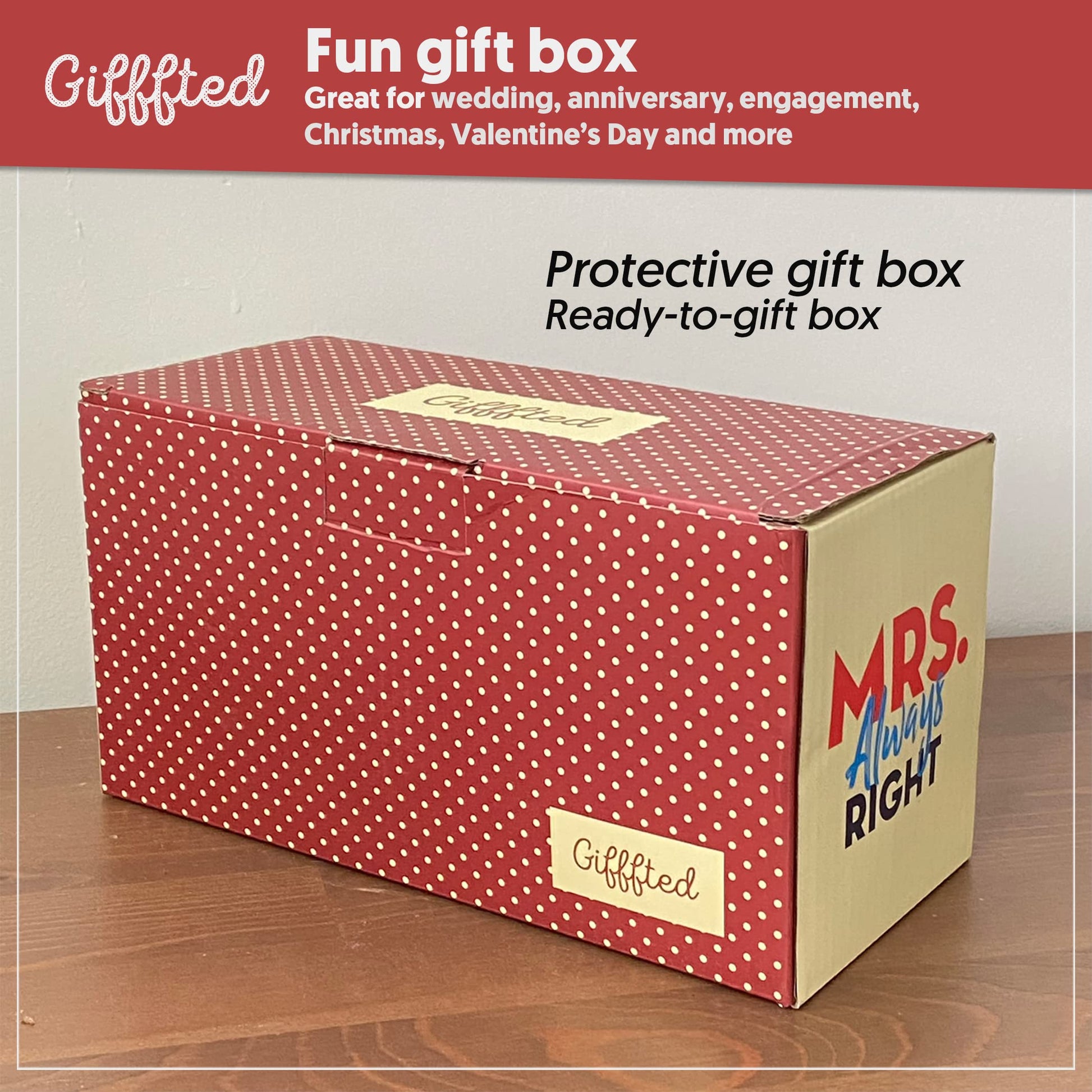 Un dúo de tazas tan encantador como irónicamente cierto: “Mr Right” y “Mrs Always Right”. Este set de cerámica Bone-China de Gifffted es el regalo perfecto para parejas con sentido del humor fino y complicidad a prueba de cafés mañaneros. Con 380 ml de capacidad y diseño impreso en ambos lados, son ideales para quienes disfrutan compartir risas... y cafeína.
