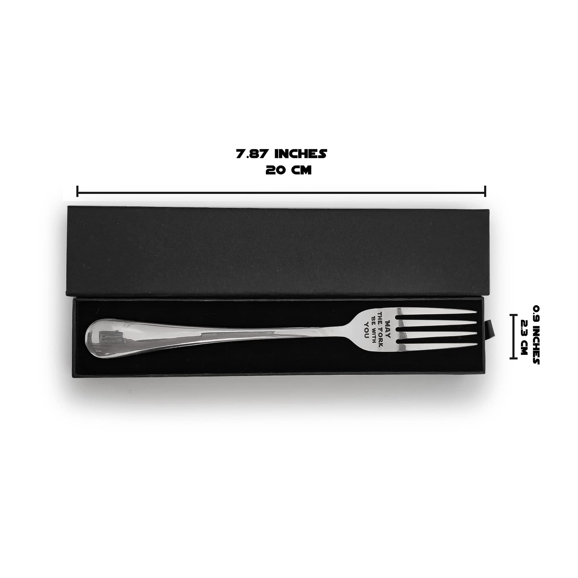 - Grabado eterno: La inscripción láser "The Fork is Strong with This One" (o similar) no se borra ni con el uso ni con el lavavajillas.