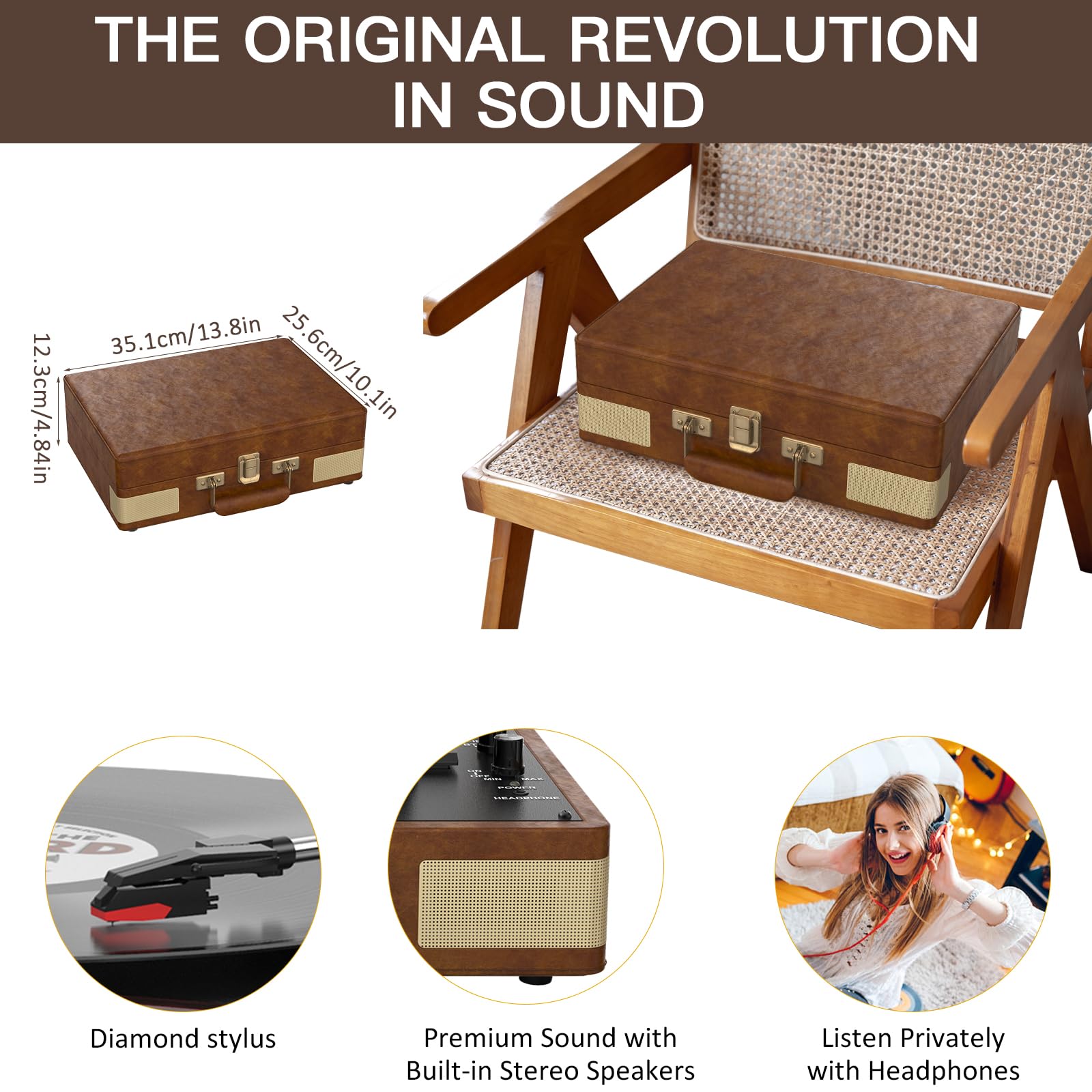 Redescubre el encanto del sonido analógico con la comodidad del presente. Este tocadiscos Bluetooth combina diseño retro en piel sintética marrón con tecnología moderna para que tus vinilos suenen como nunca —en digital, con conexión inalámbrica y un aire irresistible de nostalgia. Ideal para amantes de la música que valoran tanto el sonido como el detalle.